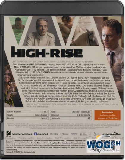 In the midst of a vast ocean stands the Elysium Tower – a glistening vertical city – a sanctuary for challenging times. Powered by sun and earth, designed by the greatest architectural visionary of the new millennium, Elysium is a self contained world. A world of commerce, cuisine and entertainment, featuring restaurants, swimming pools, libraries, cinemas, even a research hospital. It is not just the tallest and most technologically advanced work of modern architecture, but one that embodies the world's highest aspirations. Dr. Robert Laing, a new arrival, settles in and adjusts to this hermetic life. But before long he becomes aware of something unsettling in the building. In an escalating atmosphere of unrest the residents break into tribal factions. Laing watches in horror as the myth of a utopian society is shattered.