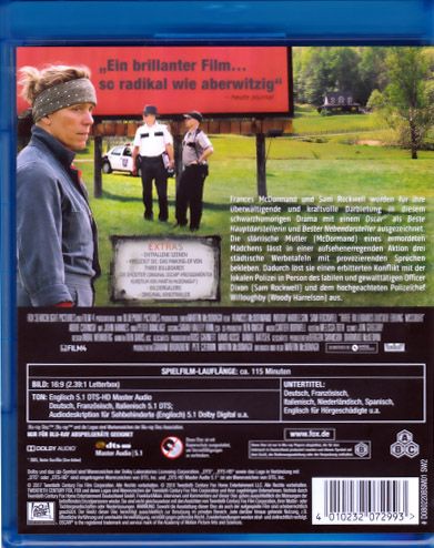 Die Tochter von Mildred Hayes (Frances McDormand) wurde vor Monaten ganz in der Nähe ihres Zuhauses vergewaltigt und ermordet, aber noch immer tut sich in dem Fall nichts. Von einem Hauptverdächtigen fehlt jedenfalls noch jede Spur und so langsam glaubt Mildred, dass die örtliche Polizei einfach ihre Arbeit nicht richtig macht. Und ganz anders als ihr Sohn Robbie (Lucas Hedges), der einfach nur sein Leben weiterleben möchte, kann sie das nicht akzeptieren. Darum lässt sie eines Tages an der Straße, die in ihren Heimatort Ebbing, Missouri führt, drei Werbetafeln mit provokanten Sprüchen aufstellen, die sich an Polizeichef William Willoughby (Woody Harrelson) richten. Klar, dass die Situation nicht lange friedlich bleibt. Als sich dann noch Officer Dixon (Sam Rockwell) einmischt, ein unreifes und gewalttätiges Muttersöhnchen, eskaliert die Lage.