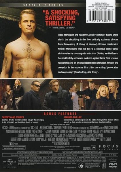 Nikoli Luzhin (Viggo Mortensen) works as a driver for one of London's most feared Easter European crime organizations, and prides himself on his loyalty to the Vory family. However, when a midwife at a local hospital (Naomi Watts) stumbles across a diary in the belongings of a young mother who died in her care. Written in Russian, what it contains unleashes the anger of the Vory, who will do anything to ensure that the details within are not revealed. For Nikoli, this will become the test of his loyalty, and to where it lies- the family who treated him like a son, or the innocent woman caught up in a spiral of deceit and murder.