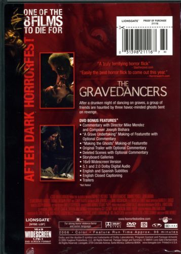 My quick rating - 5,7/10. One from the After Dark film festival which was THE premiere horror movie showcase for a few years back then. According to my database, I watched this but it was a shitty quality version back then so an upgrade came along and to be honest, I don't really much remember it anyways. It did come back to me especially the refresher of a horror flick with Dominic Purcell. This small group of friends gets all drunk after a funeral and decides to head to the graveyard. In this already bad idea, they further their stupidity and dance on the graves of some random people. Wasn't their idea entirely, someone had left a card there with this prompt. In true horror fashion, this was a really bad idea and the 3 have found themselves in a fight for their lives. For a B-budget flick, this one definitely brings the scares in a good-looking fashion. I have to admit I don't believe I have seen the desecration of someone's grave bringing back their spirit to directly attack you. At least, not like this. The whole movie is a bit of a throwback to a more 80s style which I am always a fan of. The pacing is a bit off-kilter since it did get stuck in a rut in the middle but when it kicked back into gear, the last half hour flew by. The acting was fine and left nothing to complain about. I am sure the egotistical guy (Marcus Thomas) will conjure up a person you actually know. The ending did get a bit over the top but after where they took you, it was a welcome use of over-effects as long as you don't mind non-Hollywood budget CGI. Definitely worth viewing for any fan of the genre.