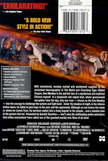 Living in an impoverished Chinese village, Dr Yang (Yu Rong Guang) is a well known local physician who provides medical care free gratis to the villagers. Looking after the ill and lame is not the only skill Dr Yang possesses. He is also an accomplished martial arts expert and vigilante known as the Iron Monkey, who is the scourge of the local villains. Robbing from the rich and giving to the poor, the Iron Monkey is the toast of the locals but soon makes himself an enemy of the local governor. When a famous fighter, Wong Kei-Ying (Donnie Yen) and his son visit the village, the young boy is captured by the governor. The youngster is held to ransom until his father agrees to dispose of the Iron Monkey. The only way to rid themselves of the evil governor and to secure the release of the young boy is for Wong Kei-Ying and the Iron Monkey to join forces.