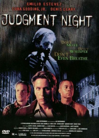“Judgment Night” is a tale of four friends; Frank Wyatt (Emilio Estevez), Mike Peterson (Cuba Gooding Jr.), John Wyatt (Stephen Dorff) and Ray Cochran (Jeremy Piven) on their way to a sporting event who take a wrong turn to avoid heavy traffic. Proving you should always stay in the line you are originally in, the group find themselves driving around a gangland and when their vehicle stalls they are the unwilling witnesses to a brutal murder. Now the killer, Fallon (Denis Leary) doesn’t want any witnesses and tries to kill the four friends but fails. Now it’s a manhunt in the middle of nowhere as the four friends are being chased and there is nowhere they can call for help.