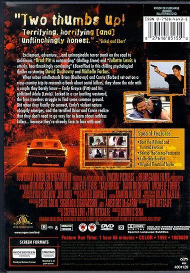 Brian Kessler (David Duchovny) is obsessed with writing a book on serial killers. He, and his photojournalist girlfriend, Carrie Laughlin (Michelle Forbes), have decided to drive cross-country to California, stopping at the sites of serial killings. They are driving with Early Grayce (Brad Pitt) and his girlfriend Adele Corners (Juliette Lewis). Early is a paroled, seemingly small-time criminal. With each murder site they visit, Brian gets pulled deeper into the dark world of serial killers. Meanwhile, Early begins to act more and more unstable and it becomes clear that he is a serial killer himself. Now Brian and Carrie have to find a way out of this eerie cat and mouse situation they have found themselves in.