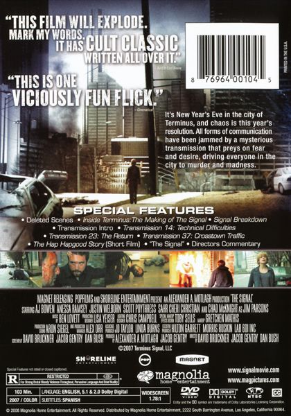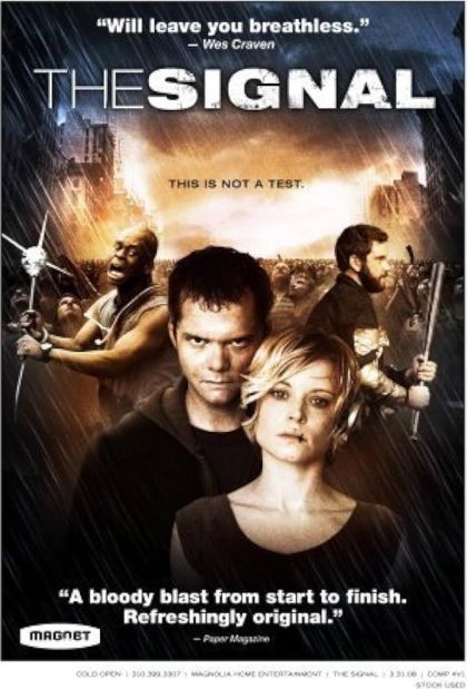 The Signal proves once again budget restraints prove no barrier to ingenuity: this scruffy, rough-around-the-edges horror film has a strong central idea and a habit of jolting you with real shocks. Something in TV and radio transmissions is getting into the brains of ordinary people and turning them into homicidal maniacs--something other than the usual homicide-inducing stuff, that is. (Incidentally, this movie was shot before the arrival of Stephen King's novel Cell, which has a similar idea.) We learn the concept in a nerve-slicing opening act, as a young woman (Anessa Ramsey) leaves her extramarital fling (Justin Welborn) to tell her husband she's splitting. Unfortunately, this is the moment a mysterious signal has infiltrated TV transmissions and cell phones, turning most of humanity, or at least the people living in the city of Terminus, into murderous savages. Serves them right for living in a city called Terminus. Why some people get "the Crazy" and some people don't is one of the problems with the film--horror movies generally rely in certain rules to carry them through--although the biggest issue viewers might have is the hodgepodgey style. Three Atlanta-based directors, David Bruckner, Jacob Gentry, and Dan Bush, helmed the three distinct sections of the movie; thus the exciting opening is followed by a jarringly comic second act, and wrapped by a somewhat bleak finale. There's enough invention here to justify the film for genre buffs, despite the nagging feeling that it doesn't quite hold together. --Robert Horton