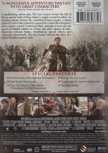 The Roman Empire lies in shambles. The young rightful Emperor Romulus Augustus (Thomas Sangster) has to flee from the Germanic invaders occupying Rome. Amrosius (Ben Kingsley), the boys old tutor, and Aurelius (Colin Firth), commander of the imerpial bodyguard, help him escape. During their attempts to regain power in Rome they have to deal with the treacherous Senator Nestor (John Hannah) and the emissary from Constantinople, whose master the Emperor of the Eastern Roman Empire has commited to an alliance with the usurpers in Rome. Failing to restore Romulus to the throne they embark on a quest that eventually leads them to Britannia, the last vestige of the former Roman Glory and home to the "Last Legion". They are followed there by Wulfila (Kevin McKidd), who was ordered to kill the last reightful heir to the throne in order to consolidate the Germanic claim on the throne. In Britannia Romulus and his followers make a last stand against the enemies of the Empire.