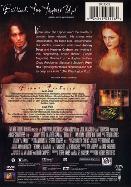 Inspector Frederick Abberline (Johnny Depp), who's opium addiction leads to boughts of clairvoyancy, works with Sergeant Peter Godley (Robbie Coltrane), to investigate a series of vicious and ritualistic murders, in Victorian Era London. Meanwhile, a group of prostitutes, amongst them, Mary Kelly (Heather Graham), are slowly picked off, one by one, becoming victims of "Jack the Ripper". Abberline's investigation eventually draws him to Mary Kelly, as he attempts to save her and her friends from the world's first serial killer. Palace intrigue and glimpses into Victorian Era medicine and psychiatry play an integral role in discovering the face behind "Jack" and what he believes he's attempting to accomplish.