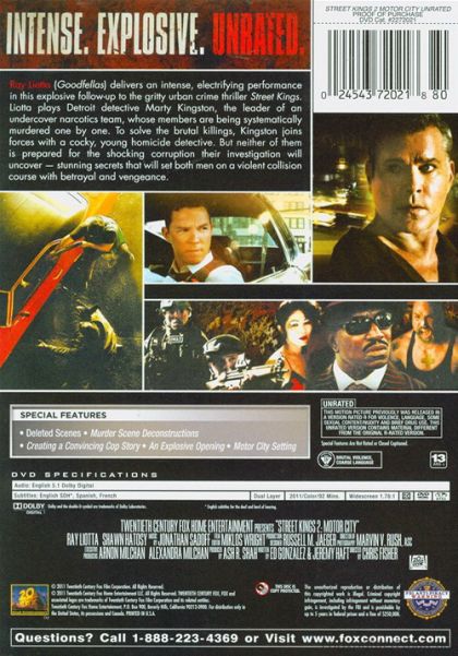 Ray Liotta (Goodfellas) delivers an intense, electrifying performance in this explosive follow-up to the gritty urban crime thriller Street Kings. Liotta plays Detroit detective Marty Kingston, the leader of an undercover narcotics team, whose members are being systematically murdered one by one. To solve the brutal killings, Kingston joins forces with a cocky, young homicide detective. But neither of them is prepared for the shocking corruption their investigation will uncover - stunning secrets that will set both men on a violent collision course with betrayal and vengeance.