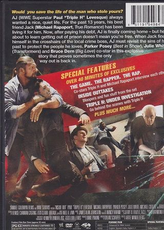 It was middle of the road,didn't try to be all about fighting or comedy,more drama really.The acting was fine, and yes Triple H held his own not getting wrapped up in the WWE thing.Rappaport was good for comedy.Plot was exactly what you expect,released from prison,drawnback into crime....etc.Parker Posey was great(what else is new).If you go in like some jackasses will assuming it's a wrestler,you wil say it sucked(before watching of course) and if you expect oscars,then you are high.Not bad overall,good download or netflix. 4.7/10 IMDB 4.5 side note At times i actually saw some decent acting out of Triple H (Paul Levesque). Strange