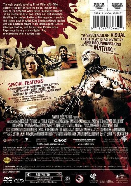 300 is a film about the Battle of Thermopylae in 480 BC between Spartans and Persians. Spartan king Leonidas (Gerard Butler) gathers 300 soldiers to fight the Persians. They build a wall at the narrow cliffs of Thermopylae (Hot Gates). Even though the Persian army is one million solders strong, the Spartans fight off numerous waves of attackers, incurring heavy losses of life on the Persians. Back in Sparta, Leonidas? wife, Queen Gorgo, (Lena Headey) tries to persuade an influential politician, Theron (Dominic West), to help her rally support for her husband. Theron demands that she sleeps with him, but then goes back on his promise of support. Outraged, the Queen kills him. Since Theron is unmasked as a Persian traitor, the Spartan Council unites against Persia. At Thermopylae, a deformed Spartan outcast, Ephialtes (Andrew Tiernan) betrays his countrymen and shows the Persians a goat path. The Spartans refuse to retreat with the Arcadians. Leonidas only orders Dilos (David Wenham) to leave the battleground in order to tell their story. The sacrifice of the Spartans inspires all of Greece to unite against the Persians. They rally a big army and prepare to fight off the invaders.