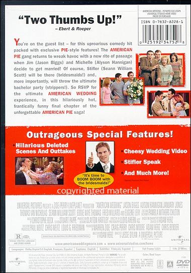 The gang from American Pie is back again, and this time they are facing one of life's biggest milestones: marriage. Jim (Jason Biggs) and Michele (Alyson Hannigan) are engaged and must navigate the difficult waters of wedding preparation, inter-family arbitration, and still find time to write their vows! As if that weren’t enough, Stiffler (Seann William Scott) is determined to make time with Michele’s hot younger sister Cadence (January Jones), but he’ll have to vie for her attention against Paul (Eddie Kaye Thomas) in a hilarious reversal of roles. With the help of Jim's dad (Eugene Levy) and the love of their friends, it all comes together despite many obstacles.