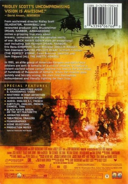 The movie "Black Hawk Down" is based on a true story about a group of Delta Force commandos and US Army Rangers led by General William Garrison (Sam Shepard). In 1993 they are dropped into Somalia to capture two warlords. After capturing the warlords, their Black Hawk helicopters are taken down by rocket propelled grenades, so more US soldiers are sent in to rescue their comrades. Sergeant Eversmann (Josh Hartnett) and Lieutenant Colonel McKnight (Tom Sizemore) are two of the soldiers who were in the downed helicopters. The rescue forces get ambushed throughout their mission, and many American soldiers are killed during the battles.