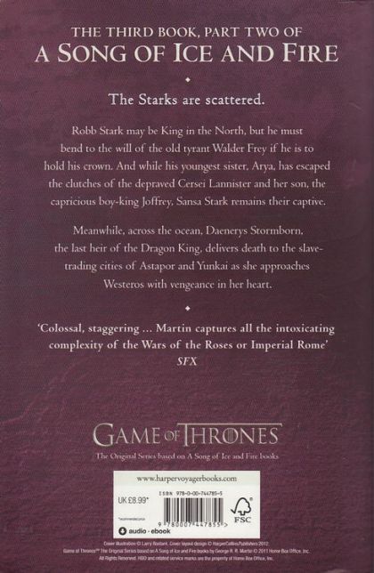 HBO's hit series A GAME OF THRONES is based on George R R Martin's internationally bestselling series A SONG OF ICE AND FIRE, the greatest fantasy epic of the modern age. A STORM OF SWORDS: BLOOD AND GOLD is the SECOND part of the third volume in the series. 'Colossal, staggering . . . one of the greats' SFX The Starks are scattered. Robb Stark may be King in the North, but he must bend to the will of the old tyrant Walder Frey if he is to hold his crown. And while his youngest sister, Arya, has escaped the clutches of the depraved Cersei Lannister and her son, the capricious boy-king Joffrey, Sansa Stark remains their captive. Meanwhile, across the ocean, Daenerys Stormborn, the last heir of the Dragon King, delivers death to the slave-trading cities of Astapor and Yunkai as she approaches Westeros with vengeance in her heart.