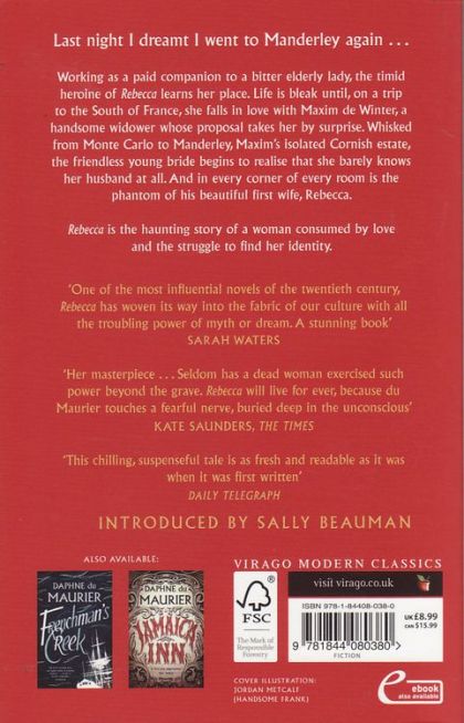 Last night I dreamt I went to Manderley again . . .Working as a lady's companion, the heroine of Rebecca learns her place. Life begins to look very bleak until, on a trip to the South of France, she meets Maxim de Winter, a handsome widower whose sudden proposal of marriage takes her by surprise. She accepts, but whisked from glamorous Monte Carlo to the ominous and brooding Manderley, the new Mrs de Winter finds Max a changed man. And the memory of his dead wife Rebecca is forever kept alive by the forbidding Mrs Danvers . . . Not since Jane Eyre has a heroine faced such difficulty with the Other Woman. An international bestseller that has never gone out of print, Rebecca is the haunting story of a young girl consumed by love and the struggle to find her identity.