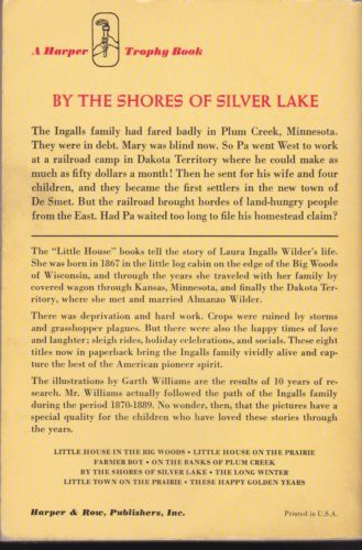 The adventures of Laura Ingalls and her family continue as they move from their little house on the banks of Plum Creek to the wilderness of the unsettled Dakota Territory. Here Pa works on the new railroad until he finds a homestead claim that is perfect for their new little house. Laura takes her first train ride as she, her sisters, and their mother come out to live with Pa on the shores of Silver Lake. After a lonely winter in the surveyors' house, Pa puts up the first building in what will soon be a brand-new town on the beautiful shores of Silver Lake. The Ingallses' covered-wagon travels are finally over.