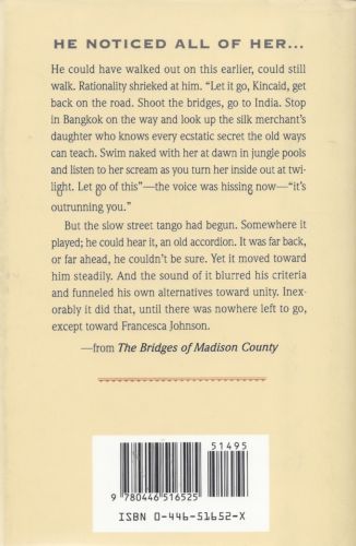Fall in love with one of the bestselling novels of all time -- the legendary love story that became a beloved film starring Clint Eastwood and Meryl Streep. If you've ever experienced the one true love of your life, a love that for some reason could never be, you will understand why readers all over the world are so moved by this small, unknown first novel that they became a publishing phenomenon and #1 bestseller. The story of Robert Kincaid, the photographer and free spirit searching for the covered bridges of Madison County, and Francesca Johnson, the farm wife waiting for the fulfillment of a girlhood dream, The Bridges of Madison County gives voice to the longings of men and women everywhere -- and shows us what it is to love and be loved so intensely that life is never the same again.