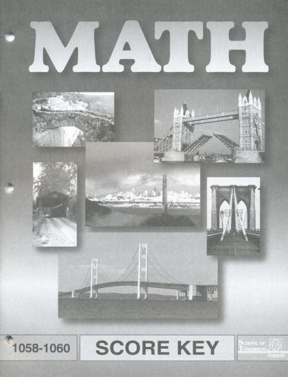 This single ACE "PACE" score key includes the answers for the sold-separately Math PACEs 1058, 1059, and 1060. Test and workbook exercises included; answers are overlaid on reproduced student pages. This key is three-hole-punched. 43 pages, booklet. Grade 5.