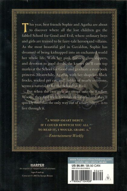 The New York Times bestselling School for Good and Evil series is an epic journey into a dazzling new world, where the only way out of a fairy tale is to live through one.Start here to follow Sophie, Agatha, and everyone at school from the beginning! This paperback edition features an Extras section, giving readers a chance to see which school they'd be in and a Q&A with the author, Soman Chainani.With her glass slippers and devotion to good deeds, Sophie knows she'll earn top marks at the School for Good and join the ranks of past students like Cinderella, Rapunzel, and Snow White. Meanwhile, Agatha, with her shapeless black frocks and wicked black cat, seems a natural fit for the villains in the School for Evil.The two girls soon find their fortunes reversed—Sophie's dumped in the School for Evil to take Uglification, Death Curses, and Henchmen Training, while Agatha finds herself in the School for Good, thrust among handsome princes and fair maidens for classes in Princess Etiquette and Animal Communication.But what if the mistake is actually the first clue to discovering who Sophie and Agatha really are?