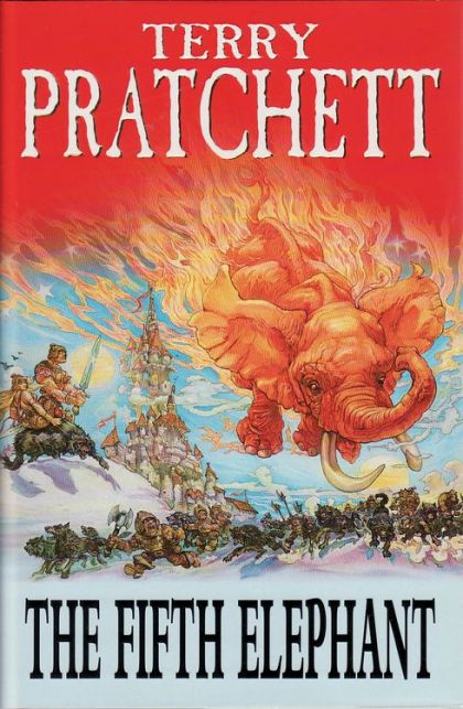 The Fifth Elephant is the 24th Discworld novel by Terry Pratchett. It introduces the clacks, a long-distance semaphore system. The Ankh-Morpork City Watch is expanding; there is now a Traffic department with traffic cameras implemented using iconograph technology and a wheel clamping team, and the clacks is beginning to replace homing pigeons for communications between officers. The Watch is also investigating the theft of the replica Scone of Stone (a parody of the real-life Stone of Scone) from the Ankh-Morpork Dwarf Bread Museum. (The Scone of Stone in the novel is kept under close guard in a dwarf mine in Überwald, and will form a vital part of the forthcoming coronation ceremony of the dwarfs' new Low King.)