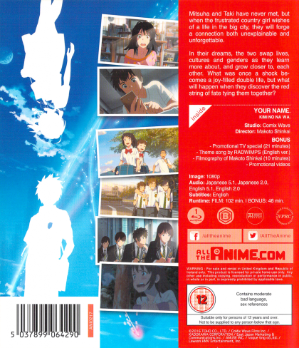 High schoolers Mitsuha and Taki are complete strangers living separate lives. But one night, they suddenly switch places. Mitsuha wakes up in Taki’s body, and he in hers. This bizarre occurrence continues to happen randomly, and the two must adjust their lives around each other.