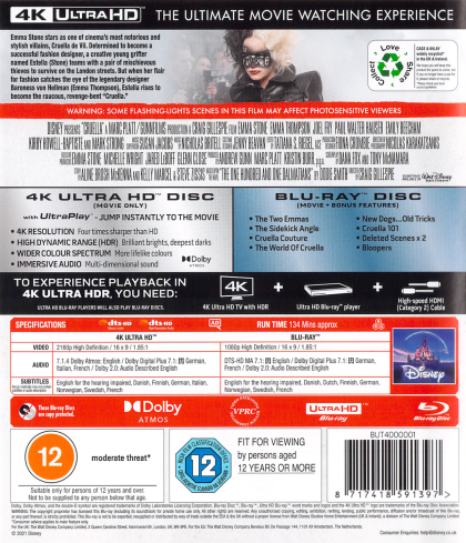 In 1970s London amidst the punk rock revolution, a young grifter named Estella is determined to make a name for herself with her designs. She befriends a pair of young thieves who appreciate her appetite for mischief, and together they are able to build a life for themselves on the London streets. One day, Estella’s flair for fashion catches the eye of the Baroness von Hellman, a fashion legend who is devastatingly chic and terrifyingly haute. But their relationship sets in motion a course of events and revelations that will cause Estella to embrace her wicked side and become the raucous, fashionable and revenge-bent Cruella.
