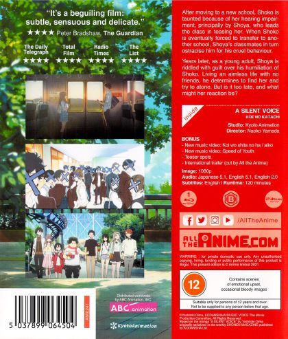 Shouya Ishida starts bullying the new girl in class, Shouko Nishimiya, because she is deaf. But as the teasing continues, the rest of the class starts to turn on Shouya for his lack of compassion. When they leave elementary school, Shouko and Shouya do not speak to each other again... until an older, wiser Shouya, tormented by his past behaviour, decides he must see Shouko once more. He wants to atone for his sins, but is it already too late...?
