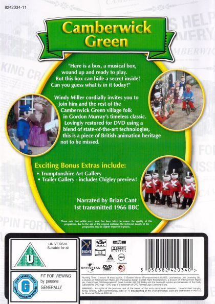 Can you guess what is in it today? And from the box would emerge one of the residents of Camberwick Green. Following a brief chat between the narrator (Brian Cant) and the character (who would respond to Cant's questions silently with nods, shrugs and shakes of the head), the scene mixed through into Camberwick Green itself - a quiet country village with all the basic amenities (bakery, butcher, garage) and, in the land surrounding it, Windy Miller's windmill, Jonathan Bell's farm and the army fort commanded by Captain Snort.