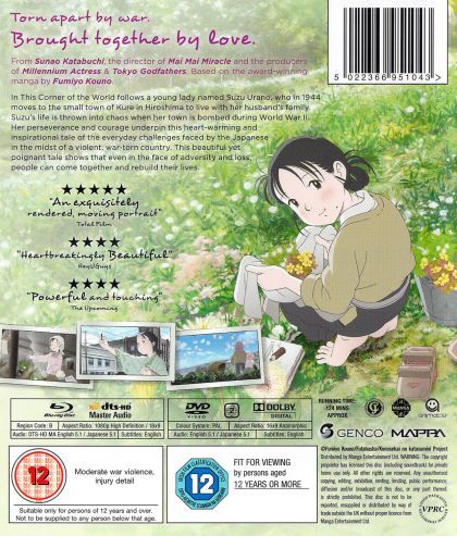 Japan, 1943, during World War II. Young Suzu leaves her village near Hiroshima to marry and live with her in-laws in Kure, a military harbor. Her creativity to overcome deprivation quickly makes her indispensable at home. Inhabited by an ancestral wisdom, Suzu impregnates the simple gestures of everyday life with poetry and beauty. The many hardships, the loss of loved ones, the frequent air raids of the enemy, nothing alters her enthusiasm…