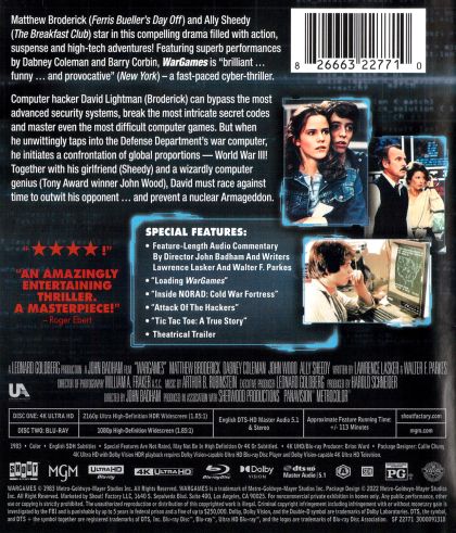 High school student David Lightman has a talent for hacking. But while trying to hack into a computer system to play unreleased video games, he unwittingly taps into the Department of Defense's war computer and initiates a confrontation of global proportions. Together with his friend and a wizardly computer genius, David must race against time to outwit his opponent and prevent a nuclear Armageddon.