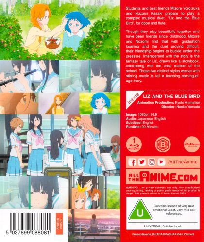 Mizore Yoroizuka and Nozomi Kasaki are a pair of best friends in their final year of high school. They're both obsessed with the school's brass band club. With Mizore on the oboe and Nozomi on the flute, they spend their days in happiness, until the club begins to practice songs inspired by the fairy tale Liz und ein Blauer Vogel - "Liz and the Blue Bird". Immersed in this story, Mizore and Nozomi begin to realize that there may be no such thing as being together forever.
