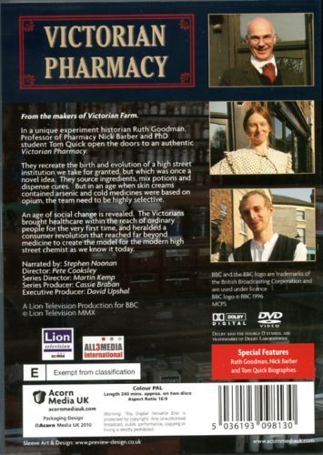 In a unique experiment, historian Ruth Goodman, Professor Nick Barber and PhD student Tom Quick recreate an authentic 19th-century pharmacy. The team discovers the world of the pharmacy at the beginning of Queen Victoria's reign in 1837; a world where traditional remedies, such as leeches, oil of earthworm and potions laced with cannabis and opium, held sway. After sampling some of the old ways, the team ventures into new discoveries, such as the Malvern water cure, the bronchial kettle for curing coughs, and the invention of Indian tonic water.