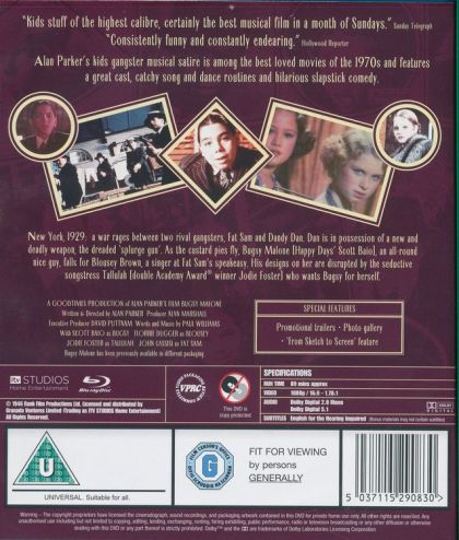 New York, 1929, a war rages between two rival gangsters, Fat Sam and Dandy Dan. Dan is in possession of a new and deadly weapon, the dreaded "splurge gun". As the custard pies fly, Bugsy Malone, an all-round nice guy, falls for Blousey Brown, a singer at Fat Sam's speakeasy. His designs on her are disrupted by the seductive songstress Tallulah who wants Bugsy for herself.