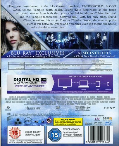 Vampire death dealer Selene fends off brutal attacks from both the Lycan clan and the Vampire faction that betrayed her. With her only allies, David and his father Thomas, she must stop the eternal war between Lycans and Vampires, even if it means she has to make the ultimate sacrifice.