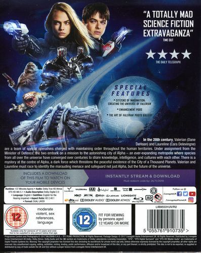 In the 28th century, Valerian and Laureline are special operatives charged with keeping order throughout the human territories. On assignment from the Minister of Defense, the two undertake a mission to Alpha, an ever-expanding metropolis where species from across the universe have converged over centuries to share knowledge, intelligence, and cultures. At the center of Alpha is a mysterious dark force which threatens the peaceful existence of the City of a Thousand Planets, and Valerian and Laureline must race to identify the menace and safeguard not just Alpha, but the future of the universe.