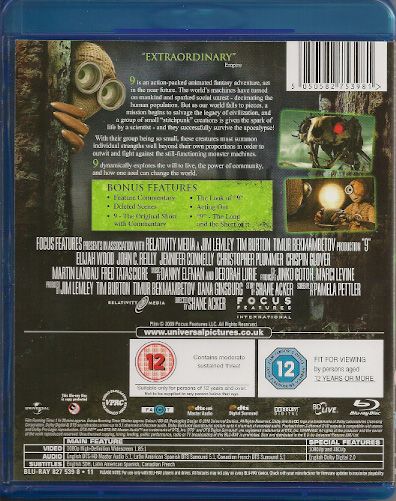 When 9 first comes to life, he finds himself in a post-apocalyptic world. All humans are gone, and it is only by chance that he discovers a small community of others like him taking refuge from fearsome machines that roam the earth intent on their extinction. Despite being the neophyte of the group, 9 convinces the others that hiding will do them no good.