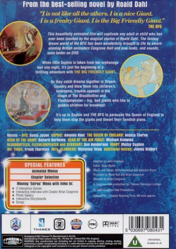 Sophie is snatched from her orphanage early one morning by the BFG (Big Friendly Giant), whom she witnesses engaged in mysterious activities. She is soon put at ease, as she learns that BFG's job is to collect, catalog and deliver pleasant dreams to children. She joins him that night, but a mean giants follow them, planning to eat the children of the world.