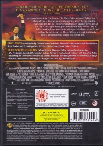 John Constantine (Keanu Reeves) is a dying anti-hero battling supernatural forces in a desperate attempt to earn his way into Heaven after having already been condemned to Hell. He crosses paths with police officer Angela Dodson (Rachel Weisz), who is grieving for her twin Isobel, the victim of an apparent suicide. As the two uncover the mystery behind Isobel’s death, they discover a battle between the forces of Heaven and Hell beyond either’s imagination, and Constantine uncovers the secret to his own redemption.