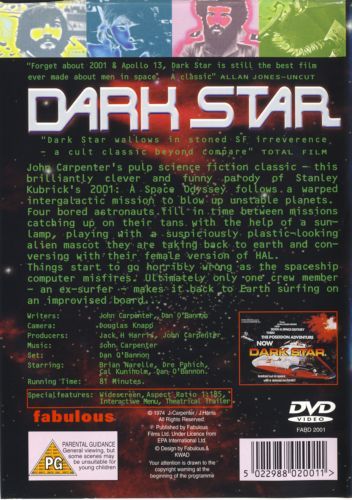 The crew of the spaceship Dark Star are on a 20-year mission to destroy unstable planets and make way for future colonisation by using smart bombs which zoom off cheerfully to do their duty. But unlike the orderly inhabitants of Star Trek's Enterprise, the nerves of this crew are becoming frayed to the point of psychosis. Their captain has been killed by a radiation leak that also destroyed their toilet paper. "Don't give me any of that 'Intelligent Life' stuff", says Commander Doolittle when presented with the possibility of alien life, "Find me something I can blow up". When an asteroid storm causes a malfunction, Bomb Number 20 (the most cheerful character in the film) has to be repeatedly talked out of exploding prematurely, each time becoming more and more peevish, until they have to teach him phenomenology to make him doubt his existence. And the film's apocalyptic ending, lifted almost wholly from Ray Bradbury's short story "Kaleidoscope" has the remaining crew drifting away from each other in space, each to a suitably absurd end. Absurd, surreal and very funny. John Carpenter once described Dark Star as "Waiting for Godot in space". Made at a cost of practically nothing, the film's effects are nevertheless impressive and, along with the number of ideas crammed into its 83 minutes, ought to shame makers of science fiction films costing hundreds of times more. --Jim Gay