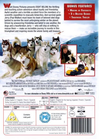 8 Below shows the love between a man and his dogs and between the dogs themselves. The movie starts off in the Antarctic. The team of explorers, get caught in a bad winter storm and are forced to leave their place of work. The only problem is that they are forced to leave behind their snow dog team. Jerry, the dogs handler vows to return to get his dogs. He tries for months to find someone to get him back there and finally after 6 long months he manages to return to where the dogs were left only to discover that they had gotten off their chain. Will Jerry be reunited with all his beloved dogs or will any of them fall under the extreme conditions they were left in. Come and join in their exciting adventure.