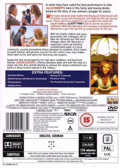 Based on a true story, Erin Brockovich (Julia Roberts) is a single mother desperate to find a job to support her three young children. In urgent need of money, she pursues a lawsuit against a driver who caused a car accident she was in. The lawsuit fails, but she convinces her lawyer Ed Masry (Albert Finney) to give her a job - as a legal assistant. She doesn't look like a legal assistant, she doesn't sound like a legal assistant, and she probably isn't really qualified to be a legal assistant, but when she finds a suspicious real estate deal by Pacific Gas and Electric, she decides to investigate. As she convinces the residents and employees to tell her what they know, she discovers the company has been illegally dumping toxic waste, poisoning the local people. But can one woman, stubborn and bold though she may be, stop a multi-billion dollar corporation?