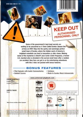 Some of the goverment's best-kept secrets are waiting to be uncovered as A Town Called Eureka: Season One arrives on DVD! Step into the quirky and seemingly perfect small town of Eureka, where hidden work of America's brightest scientists can lead to innovation or utter chaos. Making sense of the mysteries is Sheriff Jack Carter (Colin Ferguson), a former U.S. Marshall who is stranded in the surreal small town after a random car accident. Now fans can get in on his entertaining adventures with thei 3-disk set packed with bonus features.