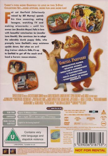 What’s a lazy fat cat to do when his owner gets a new dog named Odie who just happens to get dog napped? John, Garfield’s owner and Liz, John’s love interest search for Odie. Garfield feels that it’s his fault that Odie was dog napped because he was so mean to him, decides that it is up to him to find Odie. So he leaves behind his favorite place to lay and his kitchen full of food to search for Odie. Will Garfield be able to find Odie in time? Will these two pets ever learn to get along?