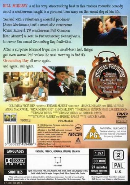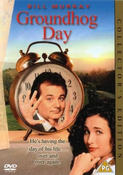 Phil Connors (Bill Murray) is a weather man with a big head, and he is not too happy when he gets sent to Punxsutawney to cover Groundhog's Day. His producer Rita (Andie MacDowell) and cameraman Larry (Chris Elliott) are much happier, but neither of them really likes Phil. It seems as though they are going to be there and gone, until a big winter storm blows in, sending them back to Punxsutawney for another night. When Phil wakes up the next morning he gets an uncanny sense of deja vu when the same song is playing on the radio as the morning before. He soon discovers that he has somehow become stuck in the same day and no matter what he does he can't seem to escape it. First he uses the repetition of the day to have some good fun, then he tries every way he can think of to kill himself, always waking up the next morning. Eventually he starts to learn some things about what is really important in life such as love and friendship, but will he be able to keep these things, or will he just wake up to another Groundhog's Day?