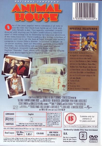 National Lampoon's Animal House is a movie about a fraternity at Faber College. This fraternity is known as the fraternity that accepts pledges that nobody else wants. The fraternity is also known for its raunchy parties. The dean is always trying to find ways of revoking the fraternity's charter by coming up with double secret probation. The fraternity members could care less about this and they go about drinking and chasing the women of the college and the town. When their charter is revoked, they retaliate by barging into the homecoming parade and basically destroying the town. The irony of the movie is that the fraternity members become doctors, senators and other famous people.