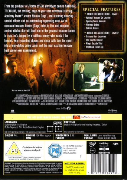 Treasure hunter, Benjamin Franklin Gates (Nicolas Cage) continues his family's obsession with finding the treasure of the Knights Templar. Their treasure is hidden somewhere in the united states, by the country's founding fathers. Gates has to decipher clues left by the founding fathers which have been left on the very symbols of the country. The various clues lead him the the Declaration of Independence, on which the most important clue is hidden. Gates has to devise a plan to steal the Declaration before it falls into the wrong hands.