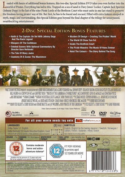The Pirates are back for their third adventure. Will Turner (Orlando Bloom) and Elizabeth Swann (Keira Knightley) have joined forces with Captain Barbosa (Geoffrey Rush), who has been brought back from the dead to help them rescue Jack Sparrow (Johnny Depp) from Davy Jones' locker. Along the way they will discover that the only way to defeat Davy Jones (Bill Nighy) and his Flying Dutchman is to stab his heart, and replace it with your own, for they say that the Flying Dutchman must always have a captain. First they must retrieve the navigational chart to World's End from Sao Feng (Chow Yun-fat) the Singapore pirate lord. Then when they rescue Jack they must find a way to defeat Davy Jones and restore order to the seas.