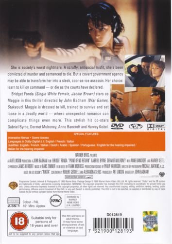 Maggie (Bridget Fonda) is involved in crime,violence and drugs. Her gang breaks into a drug store to obtain more drugs but are caught by the shop owner. A shoot out ensues and everyone is dead but Maggie. Maggie murders the police officer who discovers her and is sentenced to death by lethal injection. She awakes after her execution to find she is not dead and is in a government assasin training facility. Bob (Gabriel Byrne) becomes her mentor and offers the chance to save her life by becoming an assasin. She accepts and with the help of Bob and another teacher Amanda (Anne Bancroft) she transforms into a refined, poised, beautiful assasin. She is releaseed to live her life but with the knowledge she may be contacted at any moment to carry out a kill. While discovering her new world, Maggie meets and falls in love with JP (Dermot Mulroney). She continues to evolve into a kind and loving human being leaving her past behind her, but finds that her secret life is holding her back from her new life and new love. She becomes desperate to find a way out without risking her life or her love.