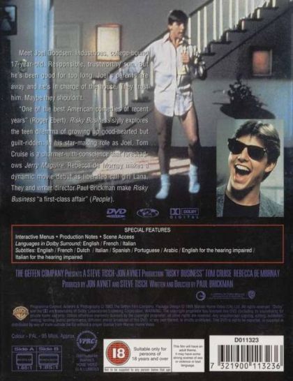Joel (Tom Cruise) is a teenager living in Chicago. He is a mediocre student and is in his last semester of high school and is determined to attend Princeton and have as much fun as possible beforehand. When his parents leave on vacation, Joel is left with the family’s upscale townhouse all to himself. Unfortunately he manages to total his father’s Porsche. Joel then has to somehow raise enough money to pay for the repairs to the car before his parents arrive home. To fund the repairs Joel manages to let his parents home out as brothel, with the charming prostitute Lana (Rebecca de Mornay) and incurs the wrath of her pimp Guido (Joe Pantoliano). Aided and abetted by his best friend Miles (Curtis Armstrong) Joel is thrown into a chain of events that are almost beyond his control.