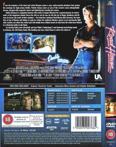 The Double Deuce is one tough bar. James Dalton’s (Patrick Swayze) old friend Cody (Jeff Healey) turns out to be the blind lead singer of the house band that plays behind chicken wire for protection from the rowdy patrons. Dalton (Patrick Swayze) has been lured away from his previous job in Memphis by bar owner Frank Tilghman (Kevin Tighe) to clean up the place and teach the staff how to keep it that way. Almost as soon as Dalton arrives he immediately gets crosswise with local bad guy and rich liquor dealer Brad Wesley (Ben Gazzara). First Dalton gets injured on the job and is treated by Wesley’s apparently ex-girlfriend, the beautiful Elizabeth "Doc" Clay (Kelly Lynch). Then he falls in love with her and she seems to fall in love with him. When Dalton makes some friends in town, Wesley has his henchmen destroy their homes and businesses. Then Dalton’s old buddy Wade Garrett (Sam Elliott) shows up. Dalton is pleased that his teacher and legendary master bouncer or “cooler” has come to help out. But when Wesley kills Garrett, Dalton really gets mad. And bad things happen when James Dalton gets angry.