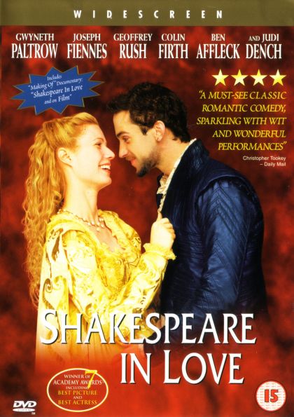 Struggling playwright Will Shakespeare (Joseph Fiennes) is under immense pressure to complete "Romeo and Ethel, the Pirate's Daughter." Globe Theatre owner Phillip Henslowe (Geoffrey Rush) needs to make money on the play, other writers are stealing his glory, and his muse is cheating on him. His writer’s block is lifted when he meets the beautiful and wealthy Viola de Lessops (Gwyneth Paltrow). Viola is engaged to marry the cruel lord Wessex (Colin Firth) but harbors secret dreams of being an actor--a career forbidden to women. Viola pretends to be a boy to win the role of Romeo and she and Will fall in love. Their romance proves to be the inspiration Will needs to transform his play into the masterpiece "Romeo and Juliet."