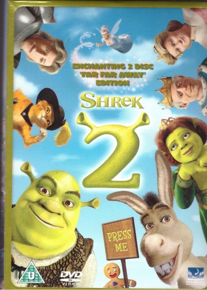 Shrek, Fiona, and Donkey go the Kindom of Far Far Away to meet Fiona’s parents. They disapprove of Shrek. The King had already promised Fiona to the Fairy Godmother’s son, Prince Charming. He plots for Puss in Boots to kill Shrek. Shrek and Donkey meet Puss and become friends. They break into the Fairy Godmother’s factory to find a potion. Shrek and Donkey both take the potion, making them, and Fiona, beautiful. They will only remain beautiful if Fiona and Shrek kiss before midnight. Prince Charming hears about this and makes a plan. He pretends to be the handsome Shrek. That night, there is a party at the castle. Finally Shrek makes it to the party and explains everything. They all live happily ever after, except for Charming and Fairy Godmother, that is.